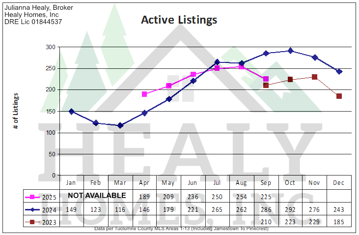 Lastly, don't miss Tuolumne County's current Active Listings graph for Area 1-13 (Jamestown to Pinecrest) as of September 16, 2025 (Picture 4 below)!