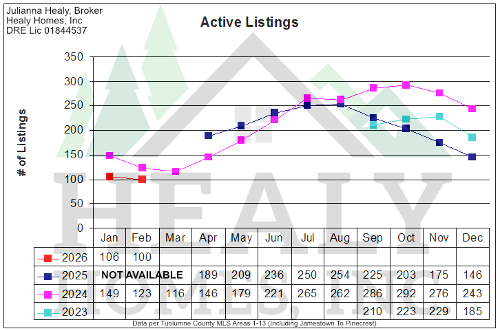 Lastly, don't miss Tuolumne County's current Active Listings graph for Area 1-13 (Jamestown to Pinecrest) as of February 19, 2026 (Picture 4 below)!